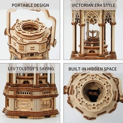 Entdecken Sie das faszinierende 3D-Holzpuzzle von ROBOTIME ROKR in Form einer viktorianischen Laterne, welches gleichzeitig als Spieluhr fungiert. Dieses exquisite Modell ist inspiriert von einer mittelalterlichen Tudor-Laterne aus dem 15. Jahrhundert und trägt auf der Unterseite ein bekanntes Zitat des berühmten Schriftstellers Leo Tolstoi: "Nicht Schönheit verzaubert, sondern Liebe lässt uns Schönheit sehen."