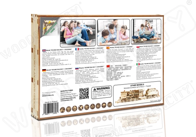 Das WOODEN CITY 3D-Puzzle Rundstrecke mit Bahnübergang bringt ein einzigartiges Bau- und Spielerlebnis. Dank durchdachter Mechanik und hochwertigem Holz entsteht eine funktionsfähige Eisenbahn im Maßstab 1:40, bei der Sie mithilfe des Bahnübergangs die Fahrtrichtung wechseln können. Der Zusammenbau ist unterhaltsam und lehrreich – Sie entdecken, wie Zahnräder, Getriebe und der Gummibandmotor zusammenarbeiten.