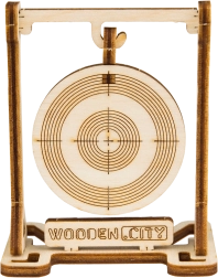 Zum Modell passt eine hölzerne Zielscheibe, auf der Sie das Zielen mit Gummigeschossen sicher üben und Ihre Treffsicherheit verfeinern können.