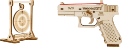 Der Bausatz besteht aus umweltfreundlichem Birken-Sperrholz und überzeugt mit realistischen Elementen wie Sicherung, Magazin und der Möglichkeit, bis zu fünf Gummibänder nacheinander abzufeuern. Ideal für Fans von 3D-Puzzles, Technik und als originelles Geschenk.