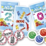Treten Sie ein in die Welt der Süßigkeiten mit diesem unterhaltsamen Kartenspiel. Das Ziel ist es, Süßigkeiten schnell zu zählen und zu gewinnen, indem Sie als Erster die passenden Formen oder Farben auf Ihrer Karte sammeln. Inhalt der Verpackung: