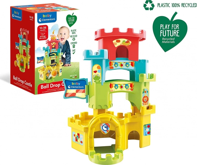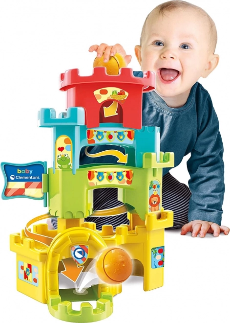 Bauen Sie eine farbenfrohe Burg und beobachten Sie, wie der Ball die Strecke durch die Türme und entlang der Mauern hinabrollt. Mit dem Einlegen des Balls auf die Turmspitze startet die spaßige Fahrt über mehrere Ebenen – ganz nebenbei trainieren Kinder Feinmotorik und Bewegungskoordination.