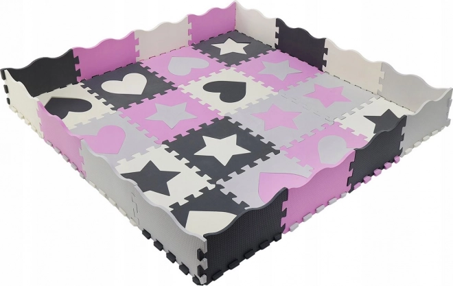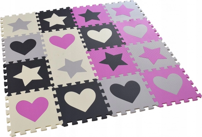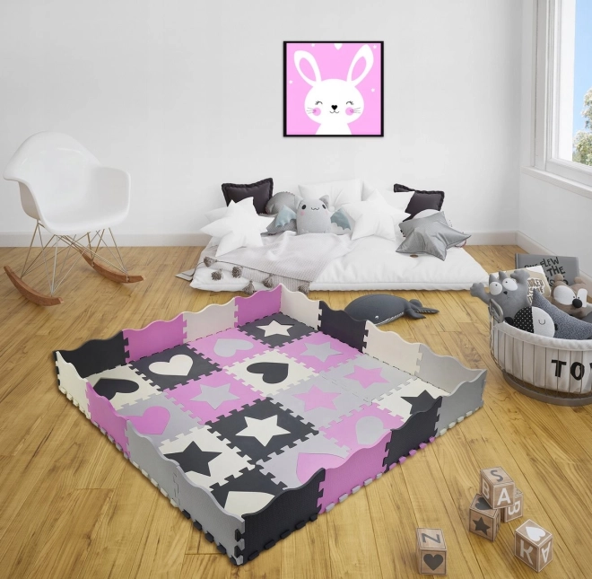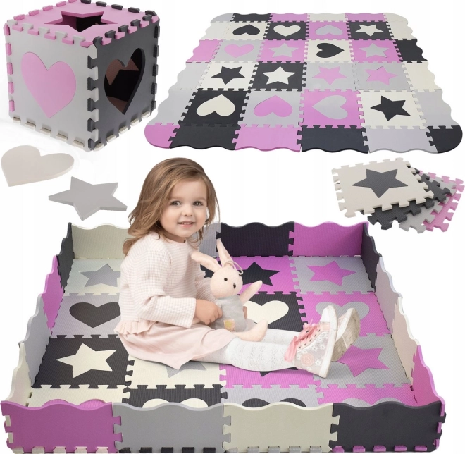 Das Schaumstoff-Puzzle mit leicht gerippter Oberfläche ist ideal als Spielteppich für Kinderzimmer, Spielzimmer oder Wohnzimmer. Die einzelnen Teile können beliebig zusammengesetzt werden, um die Größe dem Raum anzupassen. Herausnehmbare Herz- und Sternformen fördern Motorik und kreatives Spielen.