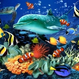 Spezielle, ausgeschnittene Teile in Form von Fischen, Schildkröten oder Delfinen bereichern das Puzzeln und begeistern Kinder wie Erwachsene. 61 originelle Teile geben dem Motiv Charakter.