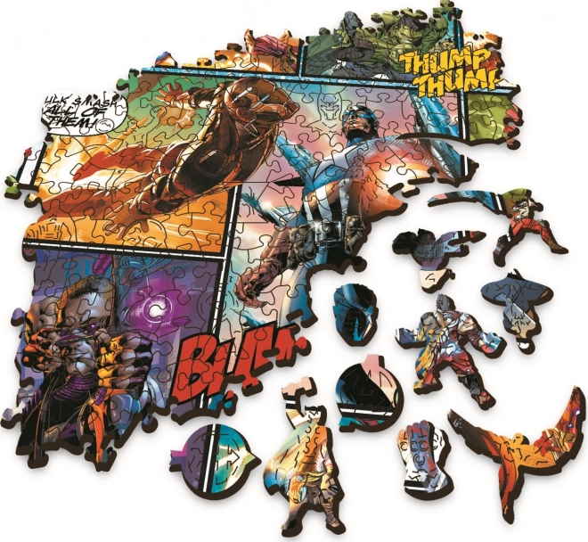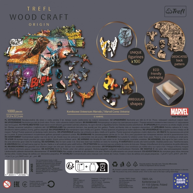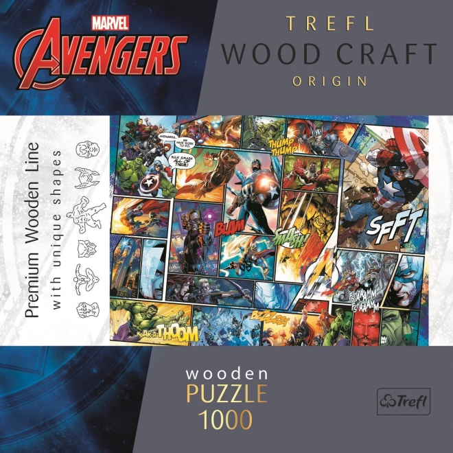 Erleben Sie die außergewöhnliche Qualität des zweiseitigen Holzpuzzles der Marke TREFL mit speziell geformten Teilen, inspiriert von den Avengers. Das Puzzle besteht aus robuster Hartfaserplatte; dank präzisem Laserschnitt besitzen die Teile glatte Kanten, die perfekt ineinandergreifen.