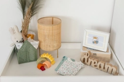 Das Stapeln der fünf bogenförmigen Teile stärkt den Griff, die Hand-Auge-Koordination und die ersten Bau-Fähigkeiten des Kindes.