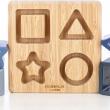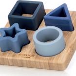 Dieses hochwertige Holz-Steckpuzzle mit blauen Silikonteilen (Quadrat, Dreieck, Stern und Kreis) ist so gestaltet, dass es Kindern auf natürliche Weise beim Erkennen von Formen und Farben hilft. Die weiche Oberfläche der Teile fühlt sich angenehm an, liegt gut in der Hand und motiviert zum wiederholten Zusammenstecken.