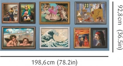 Die Gesamtabmessung des Puzzles gemäß dem entworfenem Poster beträgt 1985,6 x 928 mm*. Dank der UFT-Technologie können die Panels/Puzzles nach Belieben verbunden werden, was unterschiedliche Maße der Gesamtkomposition ermöglicht.
