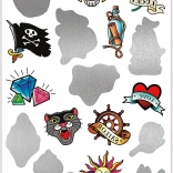 Entdecken Sie den Zauber der geheimnisvollen Piraten-Tattoos. Diese einzigartigen Tattoos sind mit einer speziellen Schicht überzogen, die das Design verbirgt, bis das Tattoo aufgetragen wird.