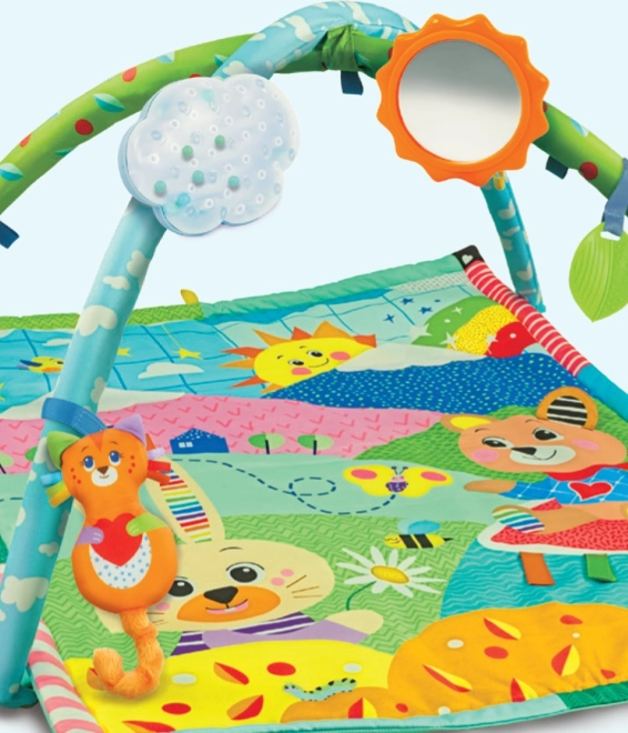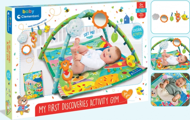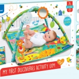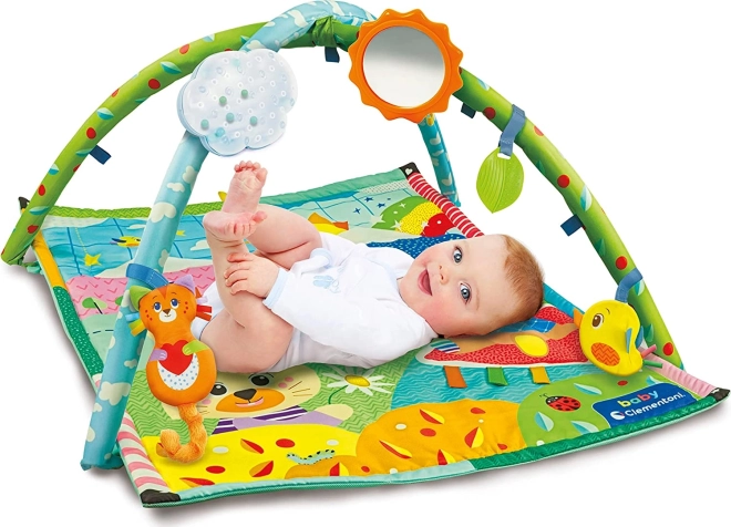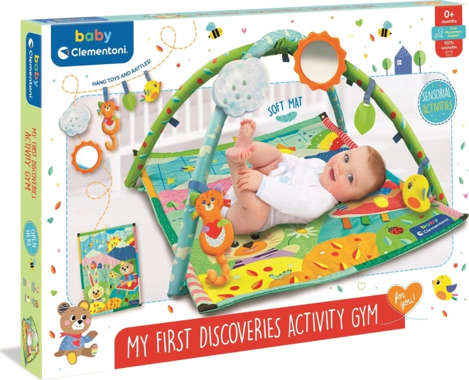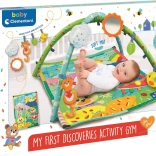 Clementoni Baby Spielmatte Meine ersten Entdeckungen ist entworfen, um die kindliche Entwicklung und motorische Fähigkeiten zu unterstützen. Dieser interaktive Bereich bietet Kindern die Möglichkeit, die Welt um sich herum zu entdecken, während sie in einer sicheren und bequemen Umgebung spielen.