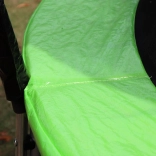 Die Einstiegöffnung mit Reißverschluss und die innere Position des Netzes verhindern Landungen im Bereich der Federn. Die gepolsterte Ummantelung der Stangen erhöht den Schutz bei Bewegung.