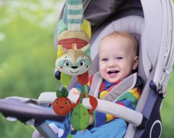 Ein leichter, superweicher Freund, der das Baby beim Spazierengehen und Ausruhen unterhält. Sichere Materialien und ansprechende Farben laden zum Entdecken ein.