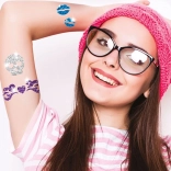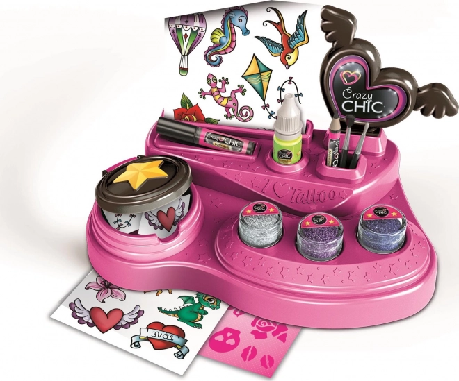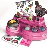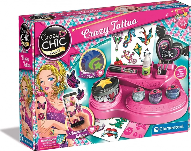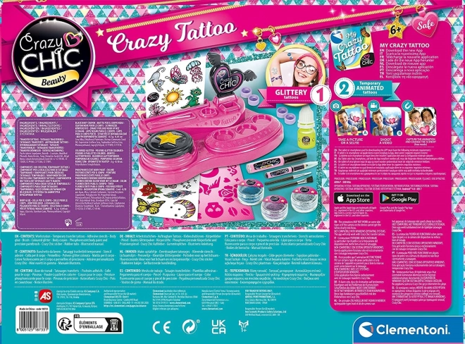 Entdecke die spaßige Welt der Kreativität mit dem Mädchenset für temporäre Tattoos CRAZY CHIC. Dank der reichhaltigen Ausstattung – Klebeschablonen, farbiger Glitzer und Körperfarbe mit Leuchteffekt – kreierst du einen originellen Look für jeden Anlass. Der praktische Arbeitstisch hält alle Utensilien zusammen und erleichtert das Auftragen.