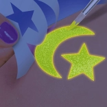 Wähle ein Motiv, trage den Kleber auf und bestreue es mit Glitzer. Dank verschiedener Schablonen kreierst du im Handumdrehen originelle Designs.