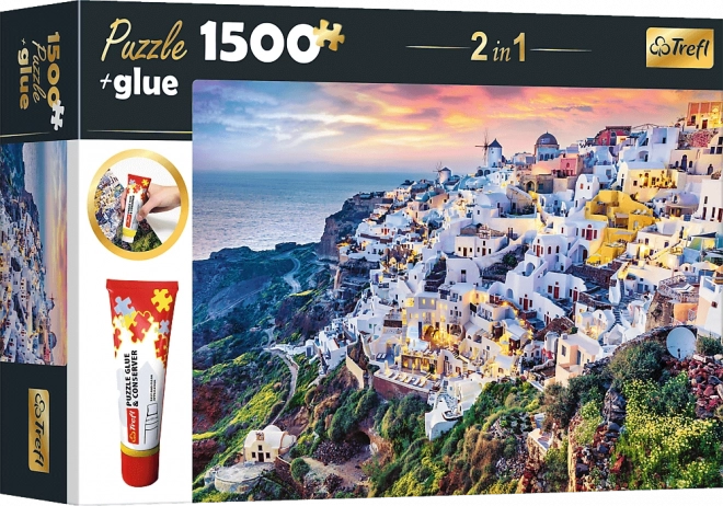 Genießen Sie das Zusammenstellen des wunderschönen 1500-teiligen Puzzles, das die magische Insel Santorini darstellt. Teil des Sets ist ein spezial Wasserkleber, der Ihr Kunstwerk dauerhaft fixiert.