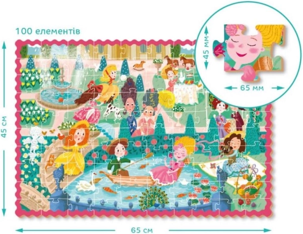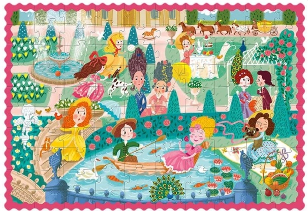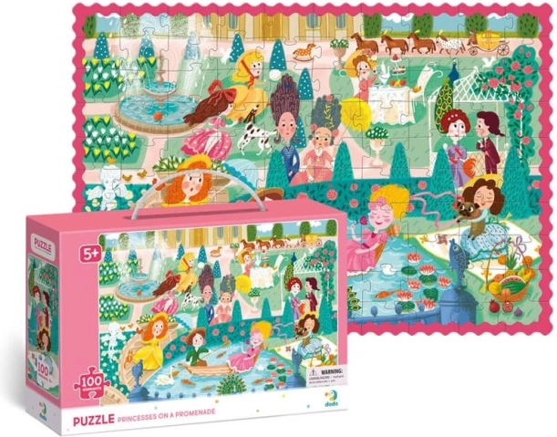 Entdecken Sie die bezaubernde Welt der Prinzessinnen mit dem DODO-Kinderpuzzle, das mit leuchtenden Farben und einer detailreichen Szene einer Gartenpromenade begeistert. Das Zusammensetzen von 100 Teilen im großen Format 65 × 45 cm ist ideal für Kinder ab 5 Jahren – anspruchsvoll genug, aber dennoch unterhaltsam.