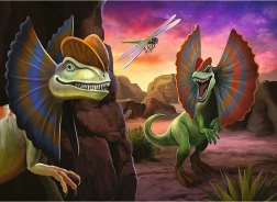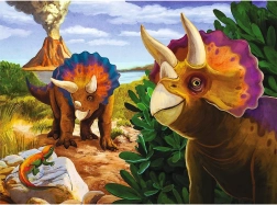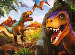 Die Puzzles enthalten farbenfrohe Illustrationen von Dinosauriern in einer prähistorischen Umgebung, die die Aufmerksamkeit der Kinder erregen und ihre Vorstellungskraft erweitern.