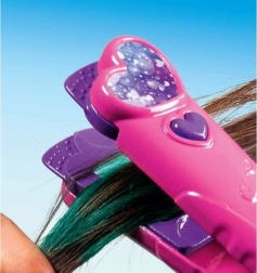 Das Studio ist so gestaltet, dass Kinder spielerisch mit Farben und Frisuren experimentieren können. Der innovative Glätter mit Fächern für Farbpulver ermöglicht eine unkomplizierte Anwendung, während Zubehör wie Perlen und Sticker den einzigartigen Look vollendet. Ideal für kleine Stylistinnen, die trendige Frisuren und kreatives Haar-Make-up ohne dauerhafte Veränderungen lieben.