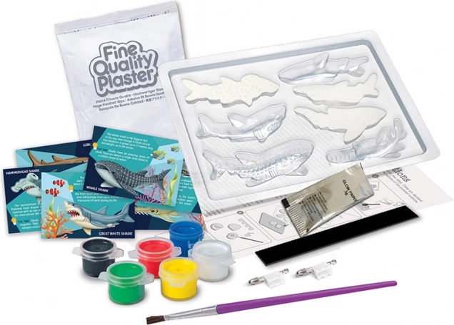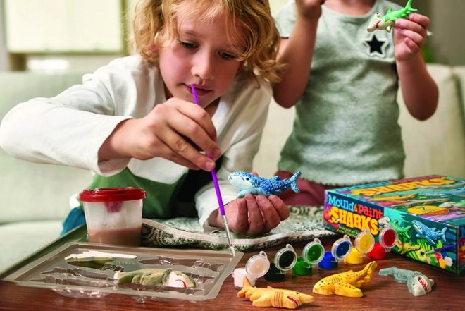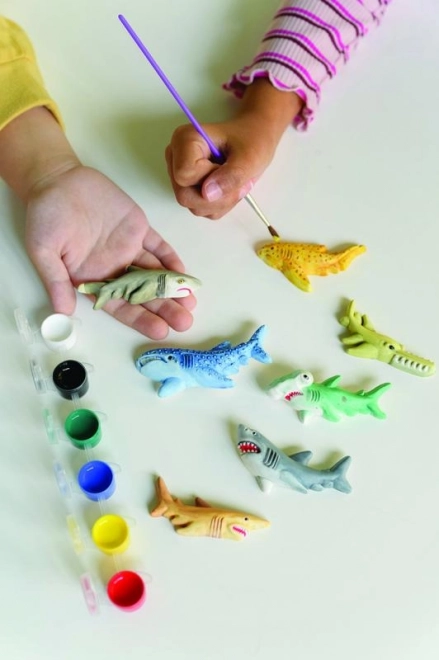 Das Set ermöglicht es Kindern, ihre Fantasie beim Malen und Modellieren von Haien voll auszuschöpfen, was ihre kreative Entwicklung fördert.