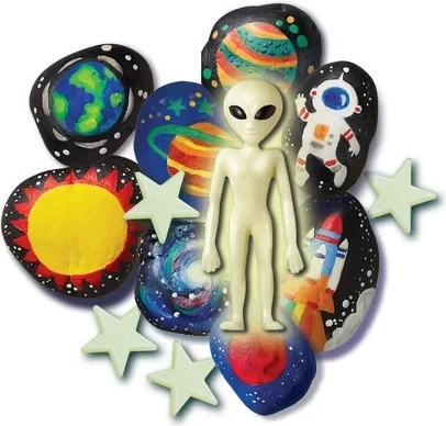 Leuchtende Sterne, leuchtender Außerirdischer, Steine zum Bemalen