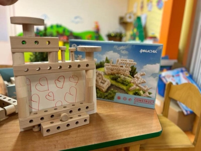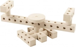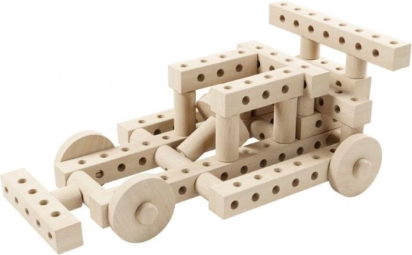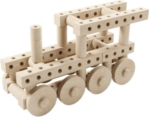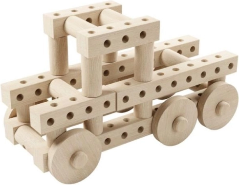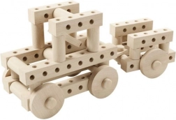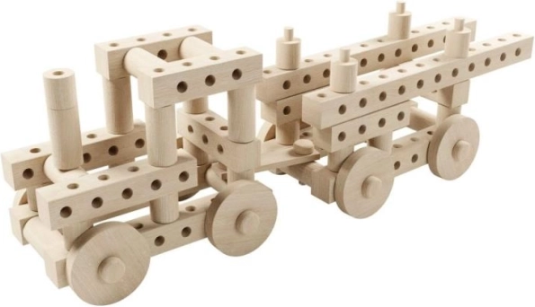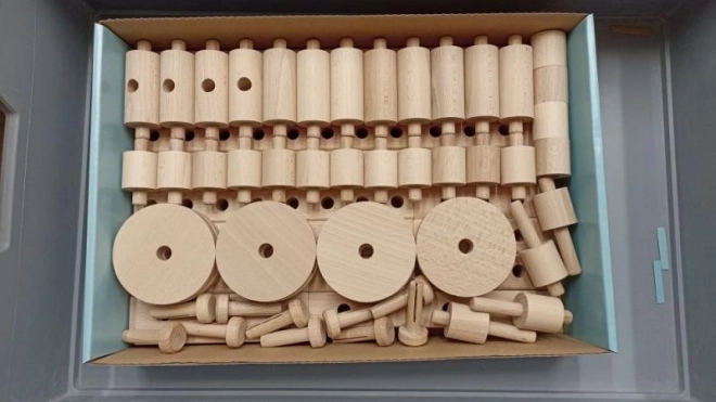 Enthält Buchenholzrollen mit einem Durchmesser von 32 mm, Balken und Räder mit Löchern, die unbegrenzte Kreativität und die Entwicklung der Feinmotorik fördern.