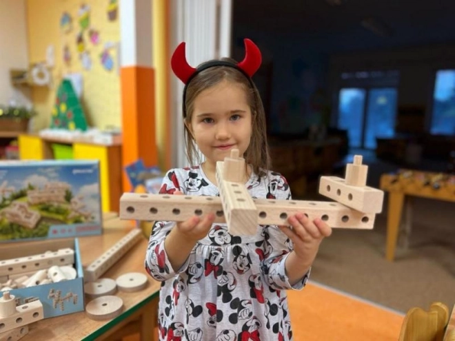 Das Bauset entwickelt kindliche Fantasie und feinmotorische Fähigkeiten durch den Bau und kreatives Spielen. Es bietet Raum für Kreativität und räumliches Vorstellungsvermögen.