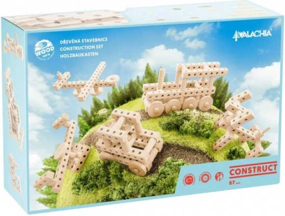 Entdecken Sie die Welt der Kreativität mit unserem Grundbausatz, der 67 Holzteile enthält. Diese Teile, einschließlich Rollen und Balken, ermöglichen den Bau verschiedener Fahrzeuge, Tiere und anderer Modelle. Alles in einer hochwertigen Kartonschachtel, die Ihre Spielzeuge langfristig schützt.
