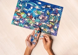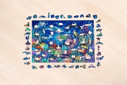 Nehmen Sie sich eine Auszeit und tauchen Sie ein in das faszinierende Ozeanmotiv voller Fische, Korallen und Meereslebewesen. Das Holzpuzzle mit 500 Teilen bietet eine Kombination aus hochwertiger Verarbeitung, elegantem Design und durchdachtem Spielspaß für die ganze Familie. Dank präzise geschnittener Formen, darunter Teile, die an Tiere und Pflanzen erinnern, ist das Puzzeln ideenreich und fesselnd.