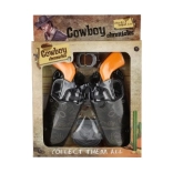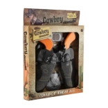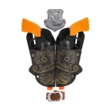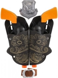 Das Cowboy-Leben fasziniert kleine Abenteurer – mit diesem Set werden ihre Western-Geschichten zum Greifen nah. Zwei stylische Revolver in Schwarz-Orange, dekorative Holster und ein Sheriffstern ergeben das perfekte Kostüm für Karneval, Partys und das tägliche Spielen.