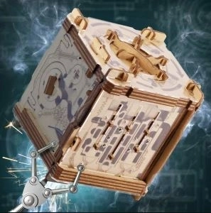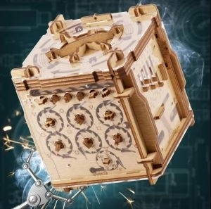 Das Holzpuzzle begeistert Sammler wie Einsteiger: 167 Teile, hochwertiges Birkenholz, Elemente aus Metall und Kunststoff, durchdachte Getriebe und drehbare Komponenten. Spielen Sie allein oder mit Familie und Freunden. Nach dem Lösen kann die Box erneut verschlossen und weitergegeben werden – der Spaß vervielfacht sich.
