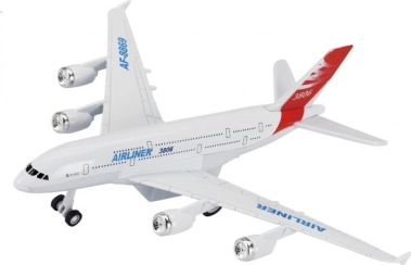 Dieses stylische Ziehflugzeug mit eindrucksvollen Licht- und Soundeffekten bringt Kindern viel Spaß und fördert ihre Fantasie. Dank des einfachen Schwungrad-Mechanismus genügt es, das Flugzeug nach hinten zu ziehen und loszulassen – schon kann das Spiel beginnen.