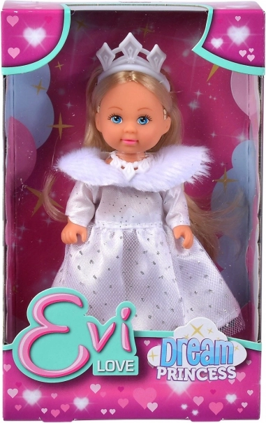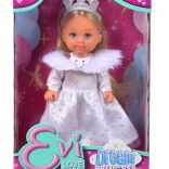 Puppe Evi Love ist der ideale Begleiter für Ihr Kind, gekleidet als Märchenprinzessin in fantastischen Winterkleidern mit einem flauschigen Kragen und glitzernden Elementen.