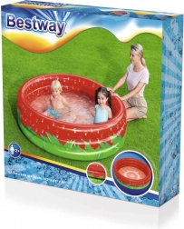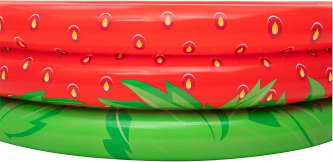 Das Erdbeerdesign mit kräftigem Rot und Grün fällt sofort ins Auge und verwandelt jeden Garten in einen kleinen Wasser-Spielplatz. Das Becken hat ein Fassungsvermögen von etwa 390 l und bietet damit ausreichend Platz zum Spielen und Abkühlen an heißen Tagen. Dank der stabilen PVC-Konstruktion und der aufblasbaren Wände ist es bequem, standfest und auch für kleinere Kinder angenehm.