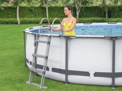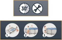 Der robuste runde Gartenpool bietet bis zu 9.150 Liter kristallklares Wasser für Erfrischung an heißen Tagen. Der korrosionsbeständige Metallrahmen mit intelligenten FrameLink System-Verbindern minimiert den Verschleiß an Metallverbindungen. Die Poolfolie aus dem mehrlagigen Material Tritech ist mit einem Polyesterkern und zwei starken PVC-Schichten verstärkt – damit ist sie besonders reiß-, durchstoß- und stoßfest.