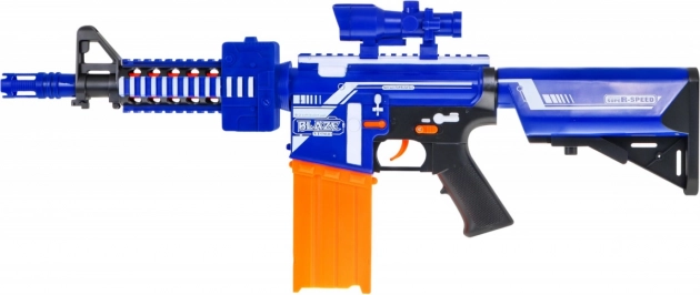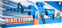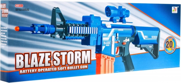 Genießen Sie Action mit dem batteriebetriebenen Kinder-Blaster BLAZE STORM. Der vollständig elektrische Antrieb sorgt für einen gleichmäßigen Lauf und stabile Leistung; jeder Abzugsdruck feuert einen Dart ab. Der lange Lauf mit zwei stabilisierenden Rollen hilft, die Flugbahn zu halten, und das abnehmbare taktische Visier erleichtert das Zielen.