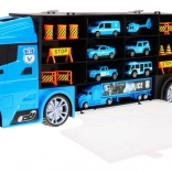 Zwei seitliche Boxen mit 13 kleineren und 5 größeren Fächern fassen Spielautos, Zubehör und Spezialfahrzeuge. Kinder haben alles übersichtlich an einem Ort.
