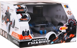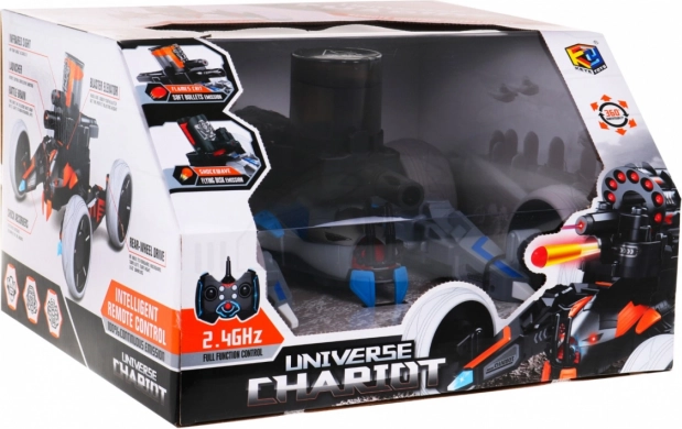 Große Gummiräder mit rutschfestem Profil und funktionierende Stoßdämpfer sorgen für eine sanfte Fahrt im Innen- und Außenbereich. Das integrierte Treffersensorsystem registriert Treffer – nach dem dritten Treffer schaltet sich das Fahrzeug aus und muss neu gestartet werden, was den Spielen Spannung und faire Regeln verleiht.