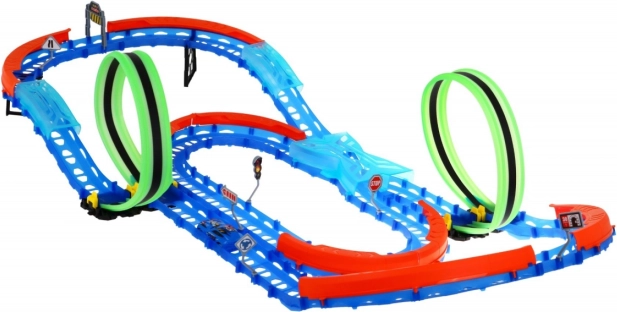 | | Die große Strecke mit zwei Loopings ist für Kinder ab 3 Jahren geeignet. Das Spielzeug wird mit Batterien betrieben: 1 x 3,7 V – Auto (im Set enthalten) und 2 x AAA – Fernbedienung (nicht im Set enthalten). Die Bahn ist fluoreszierend und leuchtet im Dunkeln. Das Auto hat LED-Beleuchtung, die Fahrt erzeugt fantastische Effekte. Viel Spaß! | |