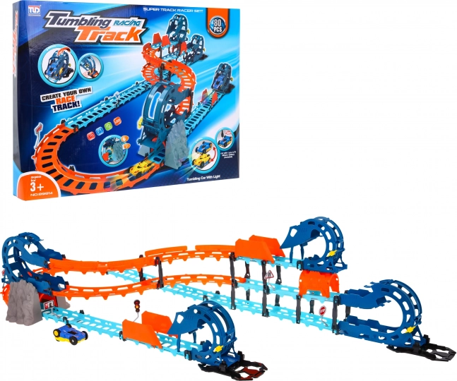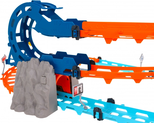 Mehrstufiges Layout, Loopings und schnelle Abfahrten sorgen für eine spannende und flüssige Fahrt. Einfache Montage und stabile Konstruktion fördern kreatives Spiel.