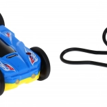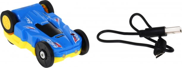 Eingebauter 3,7-V-Akku (enthalten) und Aufladen per USB sorgen für lange Fahrten ohne unnötige Pausen. Das Auto beherrscht 360°-Drehungen, verfügt über Frontscheinwerfer und hintere Gummireifen.