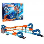 Begebe dich auf eine rasante Fahrt über die mehrstöckige Strecke voller Loopings, Kurven und Stuntelemente. Die Strecke ist für eine einfache Montage konzipiert, fördert Geschicklichkeit und Fantasie und bringt dank des beleuchteten Tunnels mit Sounds eine authentische Rennatmosphäre.