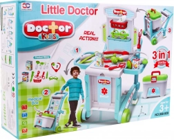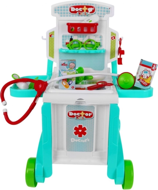 Dieses kinderärztliche Spielset in sanften Pastellfarben bietet stundenlangen Spiel- und Lernspaß. Den Rolltisch verwandeln Sie je nach Alter und Größe des Kindes leicht in zwei unterschiedliche Wagen, während der Koffer alle Instrumente sicher aufnimmt. Auf dem Tisch befinden sich 2 seitliche Ablagen für notwendige Utensilien sowie ein Aufsatz mit Fächern und Haken für „Medikamente“ und Zubehör. Dank des Griffs lässt sich die ganze Praxis bequem von Raum zu Raum transportieren.