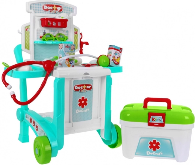 Stethoskop, Spritze, Thermometer, Schere, Pinzette und weiteres Zubehör fördern kreatives Spiel und Lernen. Das Kind kann sicher die Rolle von Arzt oder Krankenschwester ausprobieren.
