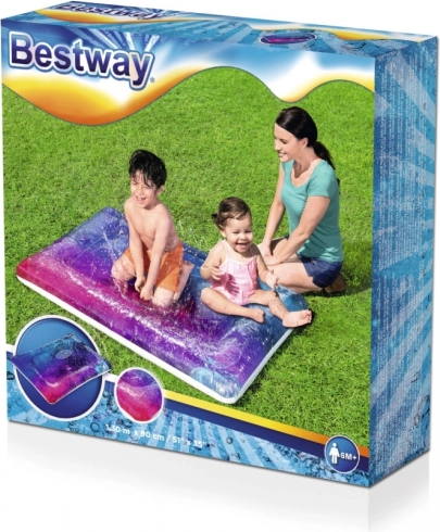 Dank des einfachen Anschlusses an den Gartenschlauch ist die Matte in wenigen Augenblicken einsatzbereit. Sicherheitsventile und vorgeprüftes, strapazierfähiges Vinyl gewährleisten eine lange Lebensdauer und eine sichere Nutzung. Das Volumen von 110 l ist ideal für das Toben kleinerer Kinder – bei minimalem Wasserverbrauch.