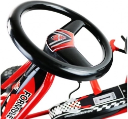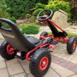 Dieser Tret-Gokart A-15 macht jede Ausfahrt zum Rennabenteuer. Ein robuster Rahmen, sportliches Design und der bequeme profilierte Sitz mit schneller Positionsverstellung sorgen für die perfekte Sitzposition – auch für wachsende Kinder. Der automatische Freilauf mit Fahrmöglichkeit vorwärts und rückwärts sowie die präzise Lenkung mit Sportlenkrad erleichtern die Fahrt.