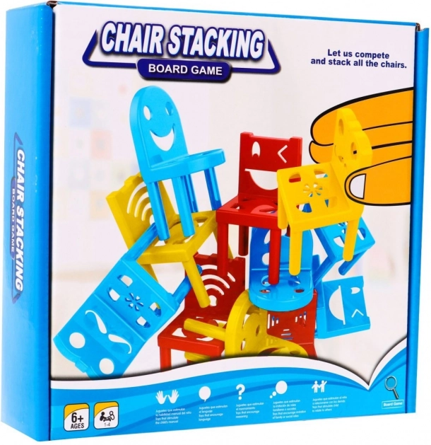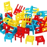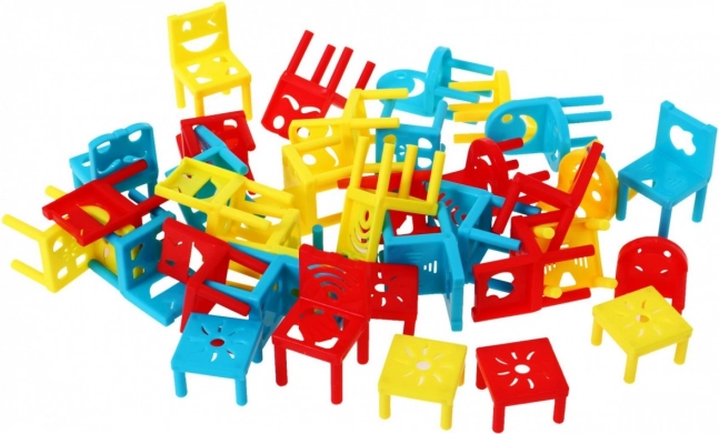 Baut den höchsten und stabilsten Turm aus verschiedenfarbigen Stühlchen und Tischchen, ohne dass die Konstruktion einstürzt. Die Spieler fügen nach und nach Teile hinzu und dürfen bereits platzierte Elemente nicht berühren. Gewinnt, wer den Turm zuerst erfolgreich baut, oder wessen Konstruktion am längsten stehen bleibt.