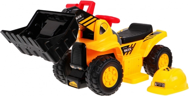 Zum Set gehört außerdem ein Schutzhelm mit verstellbarem Umfang von 50–54 cm, der beim Spiel auf der Baustelle als Sicherheitselement dient. Die maximale Belastung des Radladers beträgt 25 kg und der Antrieb erfolgt über einen 6 V 4Ah Akku. Das Spielzeug ist für Kinder ab 3 Jahren geeignet und verfügt über eine CE-Zertifizierung.