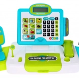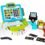 Interaktive Kinderkasse für kleine Verkäufer und Eltern. Dieses Spielzeug garantiert fröhlichen Spaß und fördert die Fähigkeiten der Kinder durch ein Touchpanel, einen Taschenrechner und einen Kartenleser.