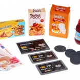 Das Set enthält viele Accessoires wie Imiationen von Lebensmittelprodukten und Karten (VIP- und Kreditkarten), die die kindliche Fantasie bereichern und das Spielen der Rolle eines Verkäufers im Geschäft ermöglichen.