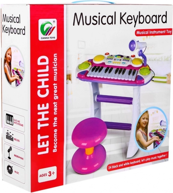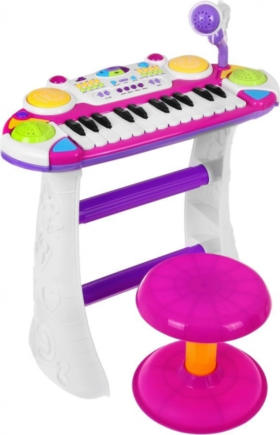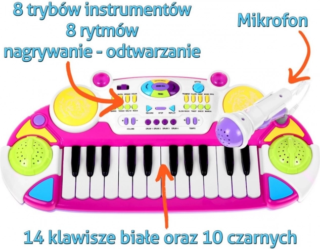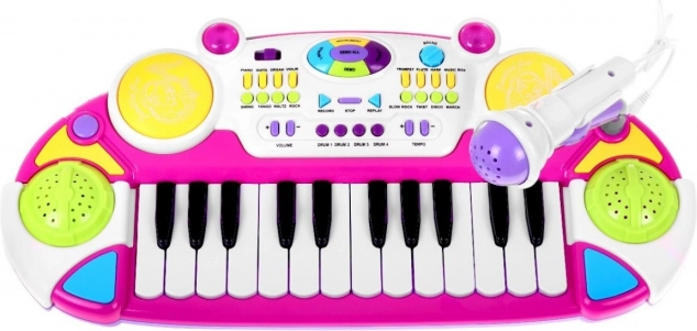Rosa Musiksatz Tasten + Schlagzeug + Mikrofon für Kinder 3+ Lichter + Klänge 2 Oktaven